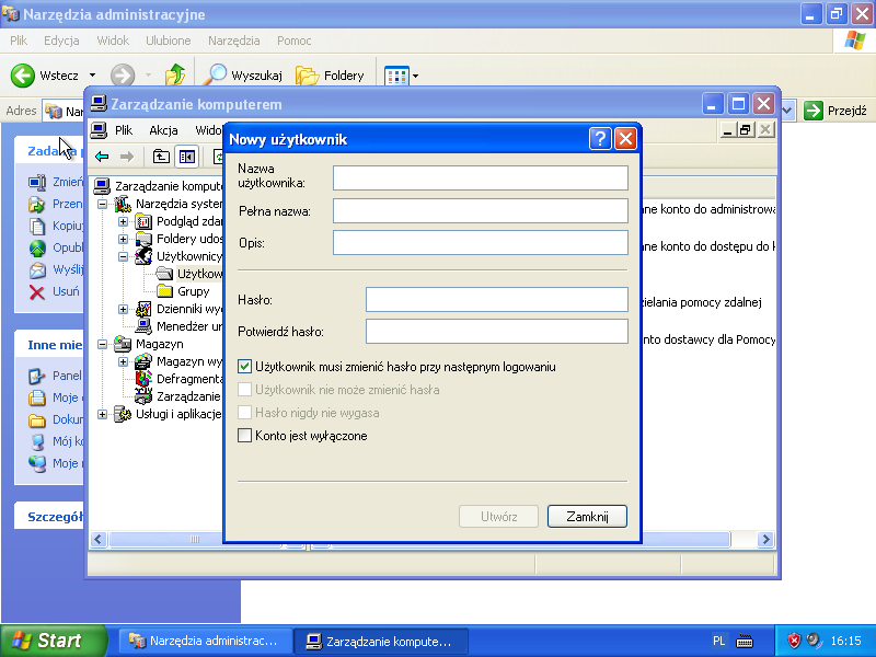 Stwórz użytkowników: „Kubuś” należący do grupy użytkownicy