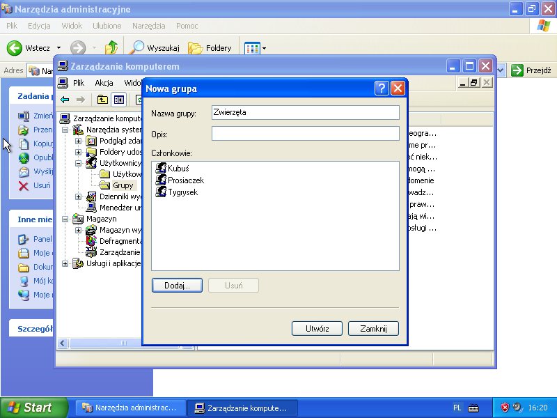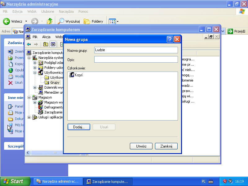 Stwórz grupę o nazwie: „Ludzie” i dopisz Krzysia do tej grupy.
